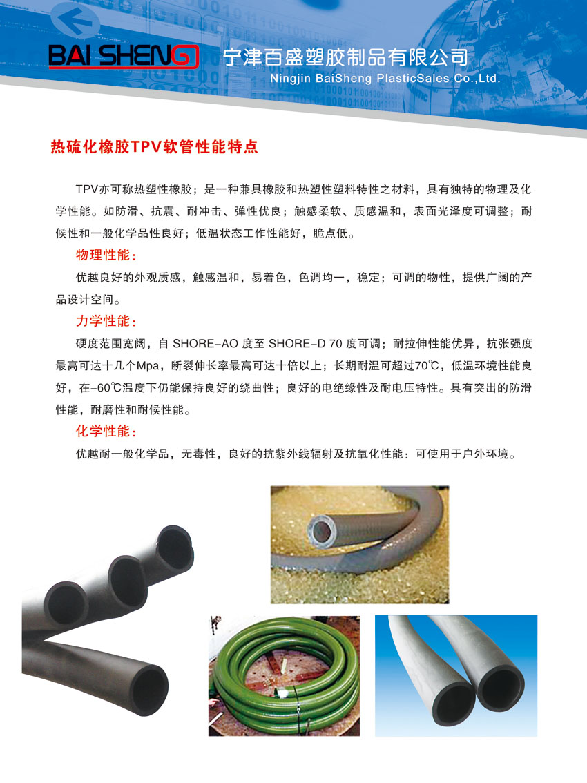 您的位置: 首頁 > 產(chǎn)品特性 > 熱硫化橡膠TPV系列軟管--TPV全塑軟管